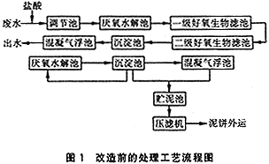 捷德紡織廠采取(qǔ)邊改造邊生產的方式進(jìn)行。由於二級生物濾池(chí)對有機物的降解率隻有30%~4 0%,且滋生蚊蠅,決定利用現有的厭(yàn)氧水解池,打掉二級生物濾池,改成生物接觸氧化池。 但厭氧水解池對COD的去除率僅有10%~20%,大量(liàng)負荷會(huì)帶給後續處理構築物,為減少生化改(gǎi)造期間的汙染,在厭氧水解池前加一套物化處理設備(bèi)(即化學混凝沉澱),以降低負荷。